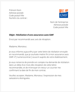 Nos exemples de lettre de résiliation d'une assurance auto GMF