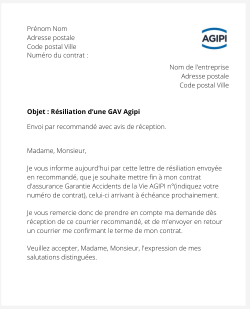 Pour mettre fin à votre GAV AGIPI, il vous suffit d'envoyer un courrier de résiliation en recommandé avec accusé de réception.